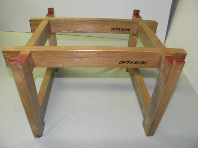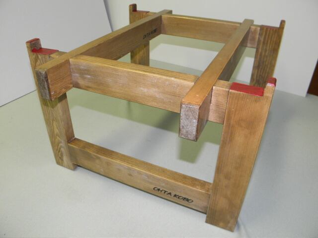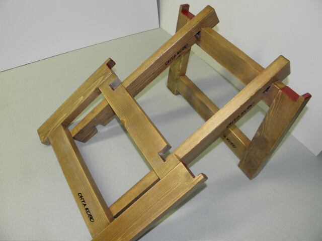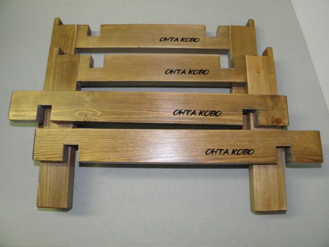 ●使用時には、2本の棒を組子に組み合わせるだけで台が簡単完成です。 ★コンテナの底の幅は32.5cmまでのコンテナが入りますが、